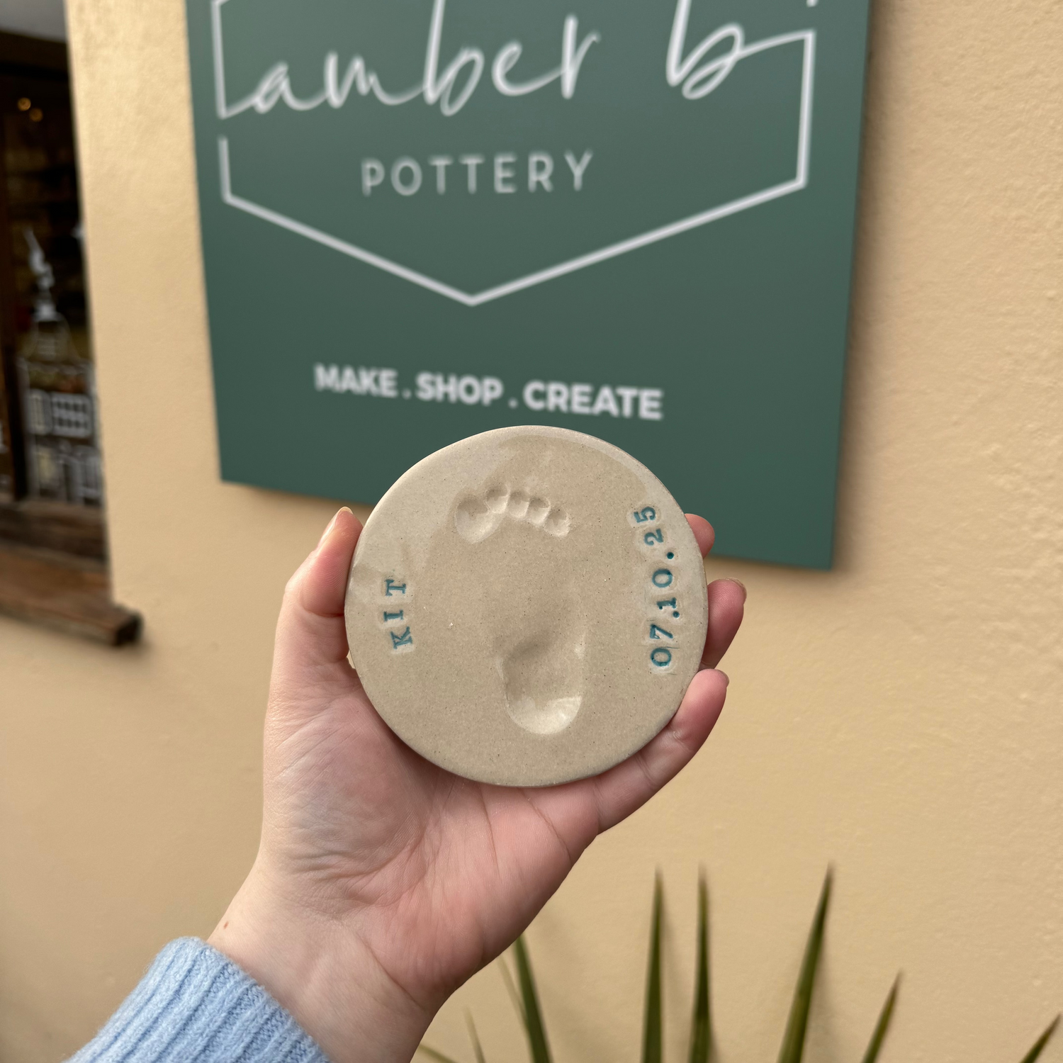 Capture a moment that lasts a lifetime with our Baby Footprint Pottery Workshop! This gentle, hands-on session is designed for parents and their little ones to create a beautiful keepsake using your baby’s tiny toes. Our friendly instructor and owner, Amber, will guide you step-by-step as you press your baby’s footprint (or hand print) into soft pottery clay, adding names, dates, or sweet designs to make it uniquely yours.